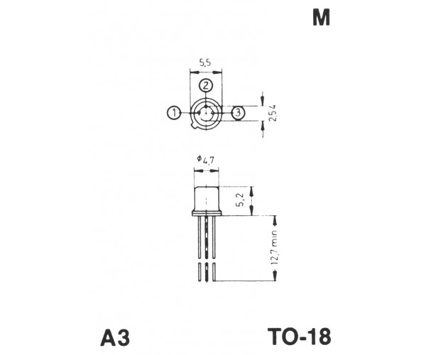 Tokozás tipusa: TO-18, Polaritás: PNP, Frekvencia: 200MHz, Feszültség (Vcb): 60V, Feszültség (Vce): 60V, max. üzemi feszültség: 60V, Teljesítmény: 1,8W, Maximális áram: 600mA, Maximális hőmérséklet: 150°C
